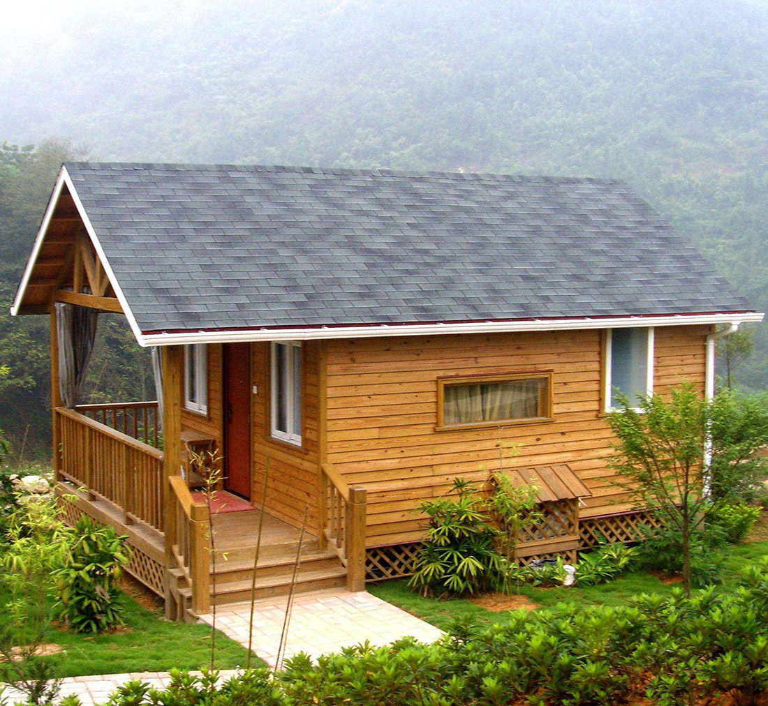 人们通常误以为水是木材的敌人,情况并不是这样,在多雨或潮湿的地方木建筑可以有长期的性能表现。防腐木木屋别墅键在于在设计和建造当中采用以木材为基础的建筑产品时懂得如何控制水分。一般来说,一栋建筑物中唯一需要完全防潮的部分是建筑物外壳,特别是屋顶它应尽可能排水,但在蓄水时需保持防水性能。如果建筑物面层可以很好的防水,那么我们可以相信建筑物中的其他建筑部件则不一定需要防水。木结构房屋是能做到不被腐蚀和不受潮的,因为我们对所有建筑用材进行烘干处理,通过烘干处理的木材可以避免绝大多数的体积变化,这些木材已预先干燥至含水率19%以下,它的防潮性能甚至可以达到砖混结构的10倍左右。含水率测量的是一块木材中含有多少相对于木材本身重量的水分。我们计算含水率的方法是木材在完全干燥时的重量除给定木材样本中水分的重量。如果木材的含水率等于或小于19%,那么木材被认为是干燥的。木材的含水率在28%左右时达到纤维饱和,纤维饱和是干缩和腐烂的基准点。除非木材的含水率达到或超过纤维饱和点,否则腐蚀菌一般不会生长。同时,我们对木材采用ACQ、BAC等防腐剂进行浸渍的防腐处理,采用天然植物油做表面涂层,来防止水侵蚀。事实上与其他常用建筑材料相比木材更不容易因为偶尔浸湿而受到永久损坏。在多雨或潮湿地方的木建筑物可以有长期的毫无问题的性能表现。