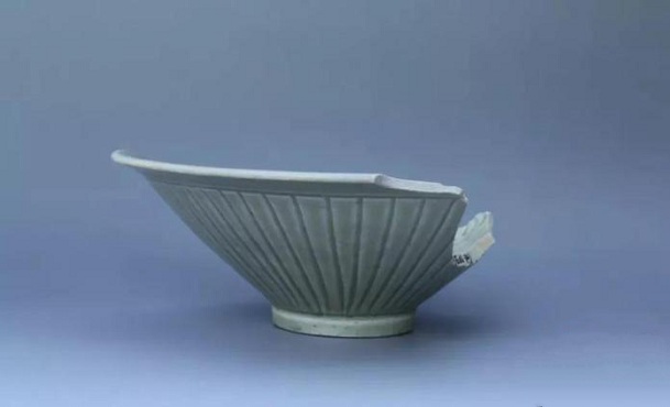 青釉双面刻划花碗