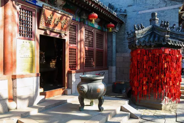 位于太平路19号的青岛市民俗博物馆,前身是始建于明成化三年,即公元1467年的青岛天后宫,距今已有500多年的历史。它是青岛最具有“古味”和“民俗味”的景点之一,也是市区唯一的明代古建筑群。时至今日,青岛本地人还习惯称之为天后宫。青瓦青砖,飞檐斗拱,天后宫是青岛市区现存最古老的明清砖木结构建筑群。