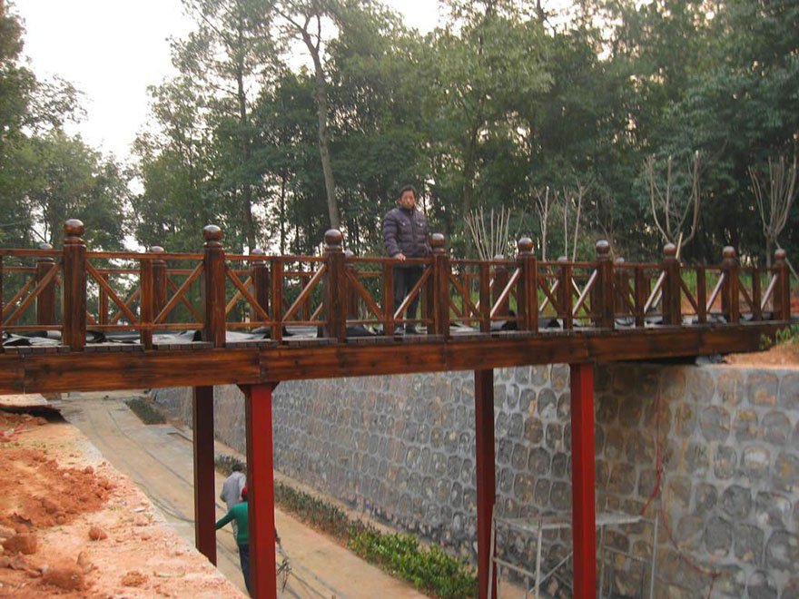 防腐木木桥是由防腐木组建而成,防腐木就是将普通木材经过人工添加化学防腐剂之后,使其具有防腐蚀、防潮,防真菌,防虫蚁、防霉变以及防水等特性。因此说,防腐木桥具有较好的性能。
