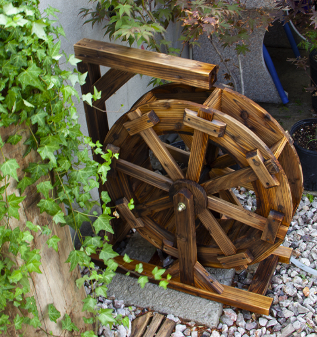 防腐木水车在景观经常出现,防腐木景观水车的出现不仅可以供人们观赏,还可以改善局部小气候,水车是人类利用水的动力发明,应用于生产作业的木制机械装置,水车按功能区分为水轮机和提水机两类,水轮机是由流水推动带叶片的转盘转动,轮盘再带动其他工具旋转做功,常用于磨坊推磨,这类水车的直径一般较小。提水机则是利用流水推动周边装有水筒的转盘转动,水筒把水带到一定高度后将水倒入盛水槽,水再将顺着水槽流向需要用水的地方,这种水车的直径就相当大了。